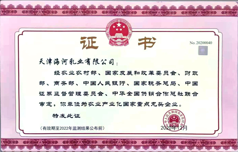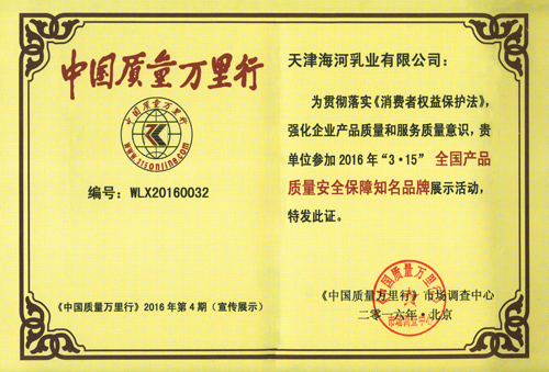 海河乳品產品均以“海河”牌作為唯一商標,取得多項榮譽及成果。